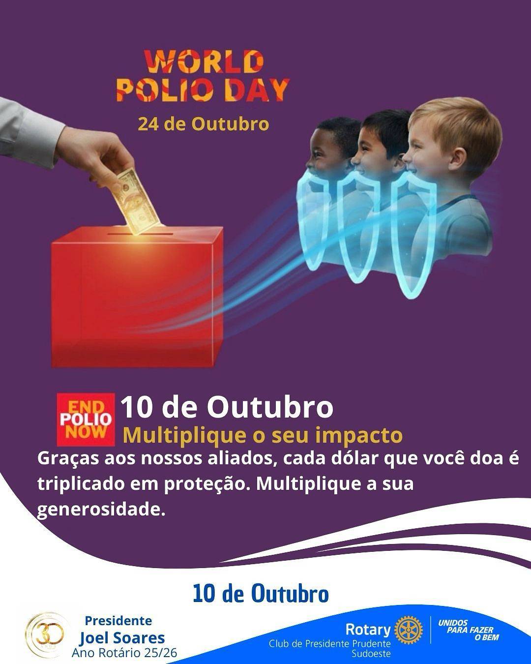 Em preparação para o World Polio Day, celebrado em 24 de outubro, o Rotary Club de Presidente Prudente Sudoeste intensifica sua campanha de conscientização e mobilização com uma mensagem poderosa: “Multiplique o seu impacto”.