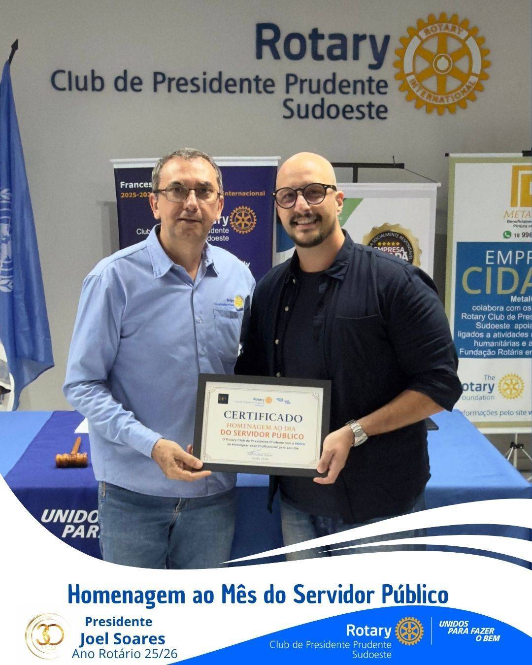 Ao reconhecer Augusto Zacarias, o Rotary Club de Presidente Prudente Sudoeste reafirma seu compromisso com a valorização dos profissionais que transformam a comunidade com seu trabalho diário. Servir é também reconhecer quem serve com excelência.