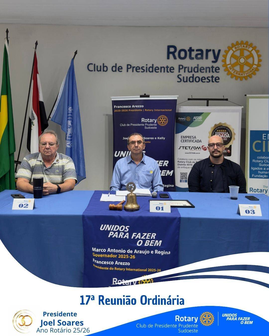 A 17ª Reunião Ordinária reafirma o compromisso do Rotary Club de Presidente Prudente Sudoeste com o companheirismo, a valorização de seus membros e a construção de um ambiente acolhedor e inspirador.